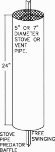 Material List: Galvanized stove or vent pipe 5-7 inch diameter x 24 inch long, 8 inch circle of 1/2 inch hardware cloth, 2 hanger iron straps 7 inches long, 2 No. 8 B32 x 3/4 inch machine screws and nuts.